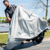 - Stays secure: elastic shock cord is sewn into the bottom hem of the cover to provide a snug fit, and a polyester webbing belly strap is sewn in to prevent the motorcycle cover from coming off in high winds
