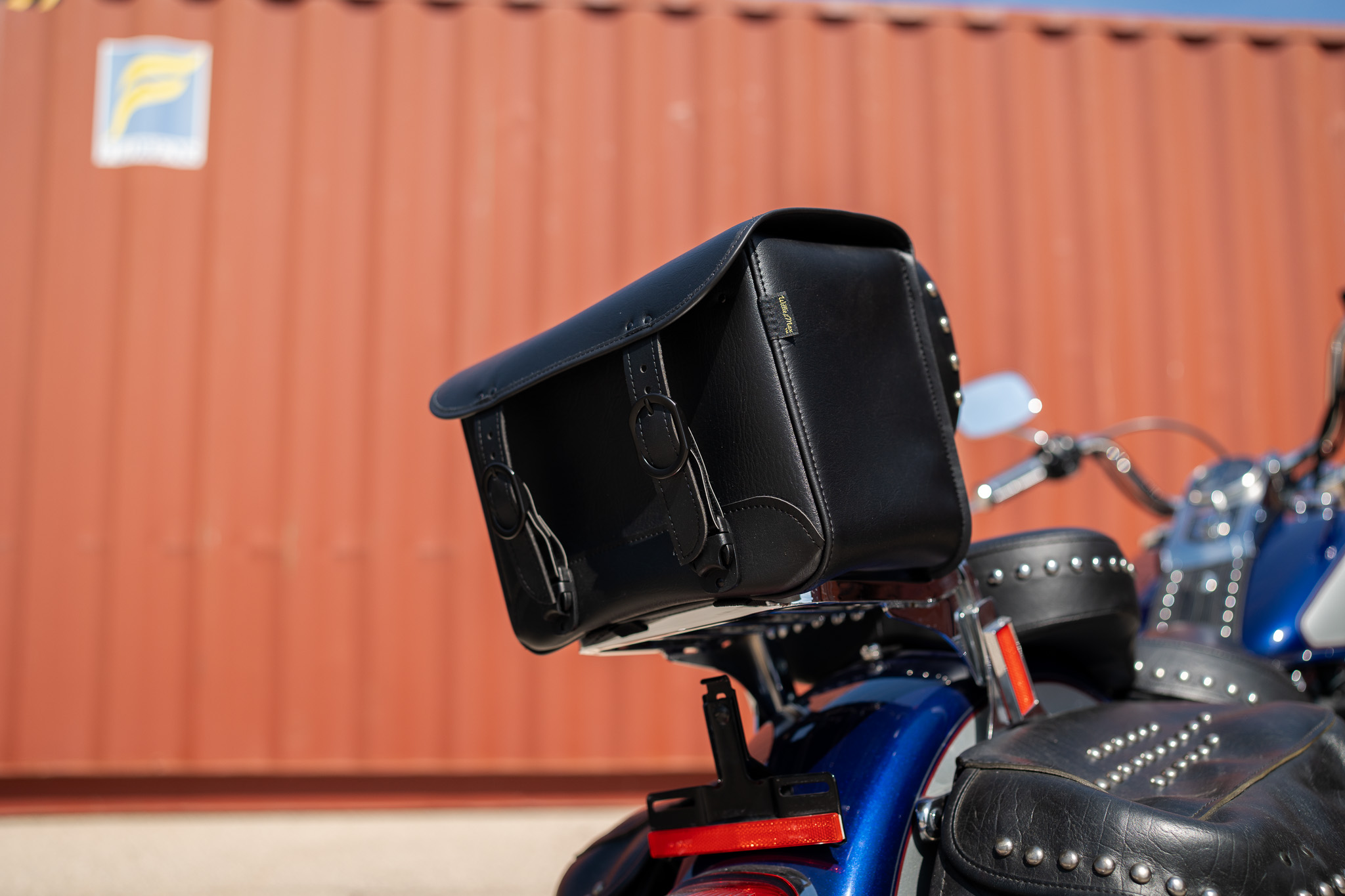 Elevate your bike’s style and storage with our premium Black Jack tail bag/trunk bag—designed for touring and cruiser bikes. This universal, one-size-fits-all accessory features durable faux leather construction paired with plastic reinforcements to ensure long-lasting shape retention. The attached carry handle and quick release buckles provide effortless portability and secure attachment, making it the ideal choice for avid cyclists. Proudly made in WI, USA, this sleek black bag measures 13″ x 9.5″ x 10″, offering ample space for essentials on every adventure. Whether you’re planning a long-distance tour or a casual ride, upgrade your bike with this rugged, stylish, and practical storage solution that’s built to withstand the demands of the road.