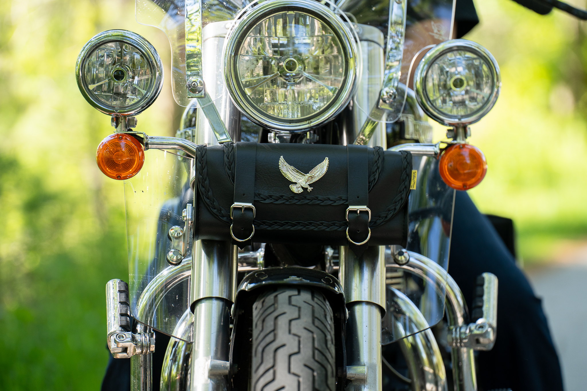 The Willie & Max Tool Bag is made to be a low-profile place to store some essential items while you ride. It is designed to be installed on your front forks, swingarm, sissy bar, or fender supports. The bag is constructed with ultra-durable, water and UV-resistant synthetic leather.