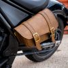 Finally, a warm brown and brass monkey combo, compact left side solo bag made specifically for sportster-style bikes with a smaller profile! We designed the Willie & Max Brass Monkey 4.0L Swingarm bag with bikes like the Honda Rebel in mind. The Warm Brown 4.0L Swingarm Bag measures a trim 9.5in x 11.5in — these compact dimensions are ideal fit for smaller cruisers and sportster-style bikes like the Honda Rebel 500 or 300 or the Harley-Davidson Forty Eight, with plenty of capacity for wallet, keys, gloves, or sunglasses.