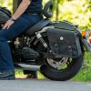 Ride in style with this medium-sized motorcycle saddlebag set, featuring a 1.5″ silver concho with decorative lace for a classic, throwback look. Crafted for durability and convenience, these bags are the perfect blend of form and function—giving you just enough room for the essentials without adding bulk.