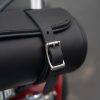 Compact and versatile, this round leather bag is ideal for storing small essentials such as tools, gloves, sunglasses, or other must-haves for the road. The durable leather straps allow you to securely mount it to various locations on your bike, including the front fork, swing arm, or rear fender support.