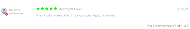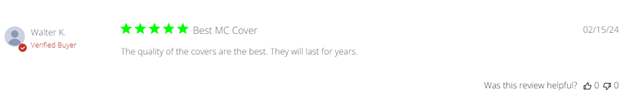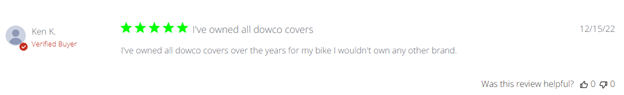 “I’ve owned all Dowco covers over the years for my bike. I wouldn’t own any other brand.”